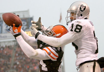Is there any quarterback in the league that Cleveland fans were more delighted to see yesterday than Frye? Besides the local ties and the fact that Frye is basically a good guy, his continued erratic play was a most welcome sight. Playing like he is still in the MAC conference, Frye was pressured early on and forced some bad throws, which practically killed any hopes of a Raider threat.