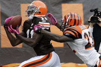 Because of this blanket attention and Braylon's own starcrossed demeanor, the early season productivity at the wide receiver spot was virtually non-existent. Until the first Bengal game, where Mohammed Massaquoi enjoyed his NFL coming out party, the Browns wideouts were essentially non-factors in a depressing check-down offense.